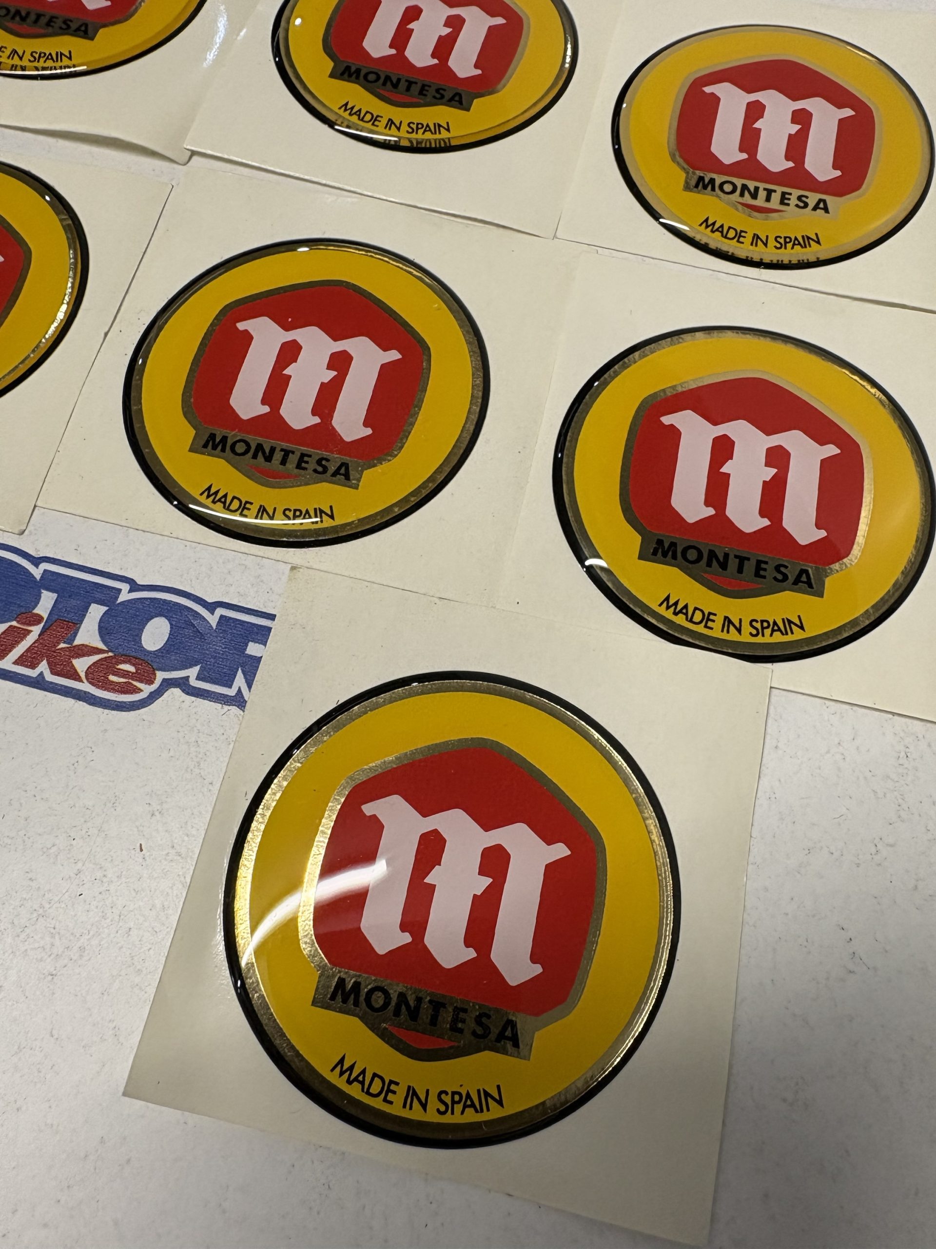 10 Anagramas de Montesa, para depósitos de gasolina, hacen 54 mm de diámetro, son flexibles de gota de resina.