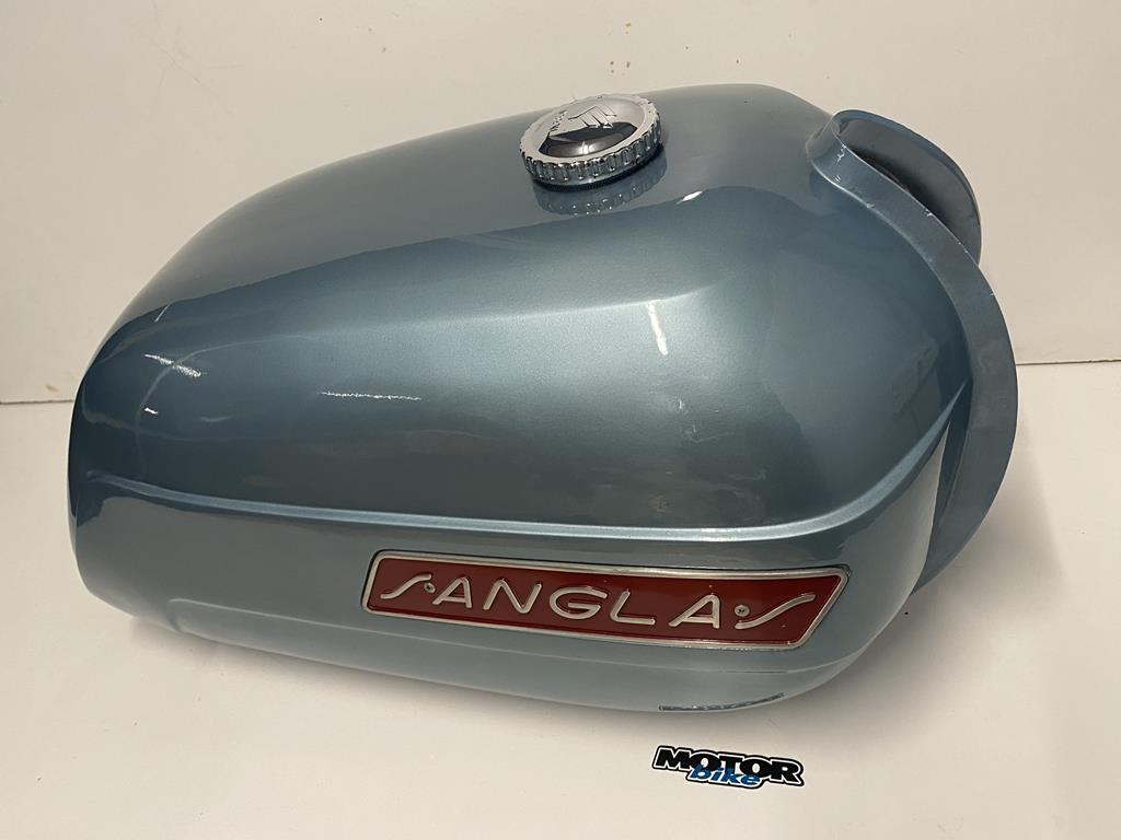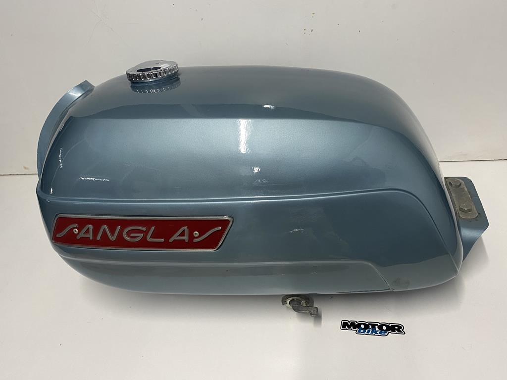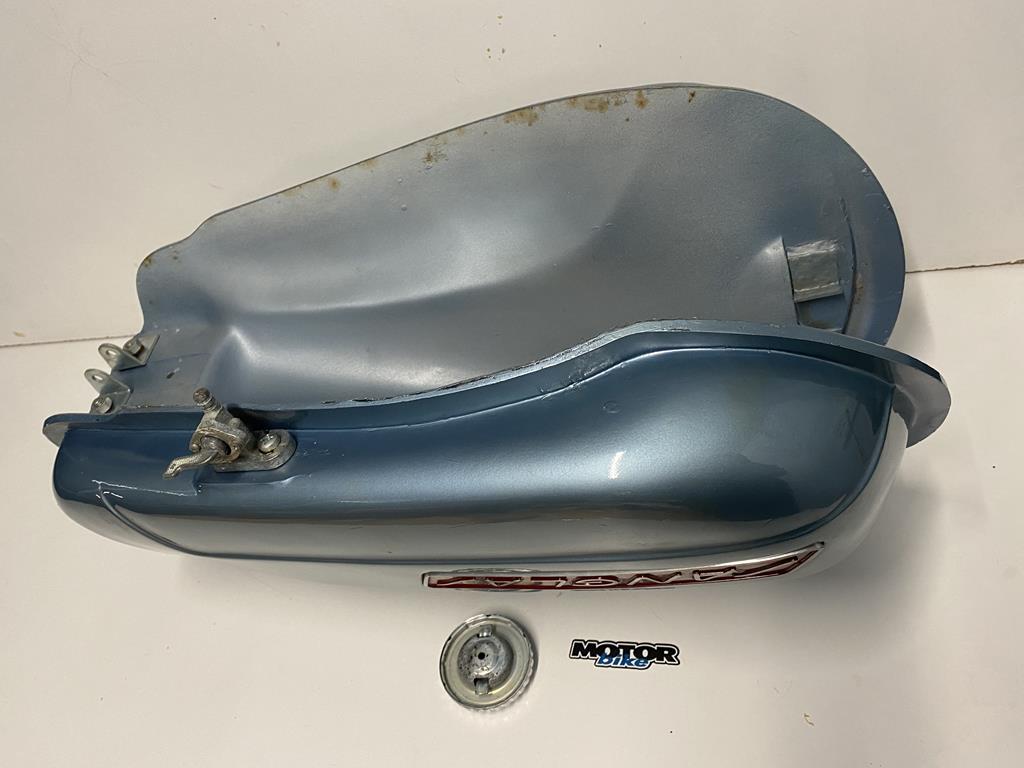 Depósito de Sanglas 400 nuevo, color azúl metálizado, con tapón metálico y grifo, es original de los años 80.