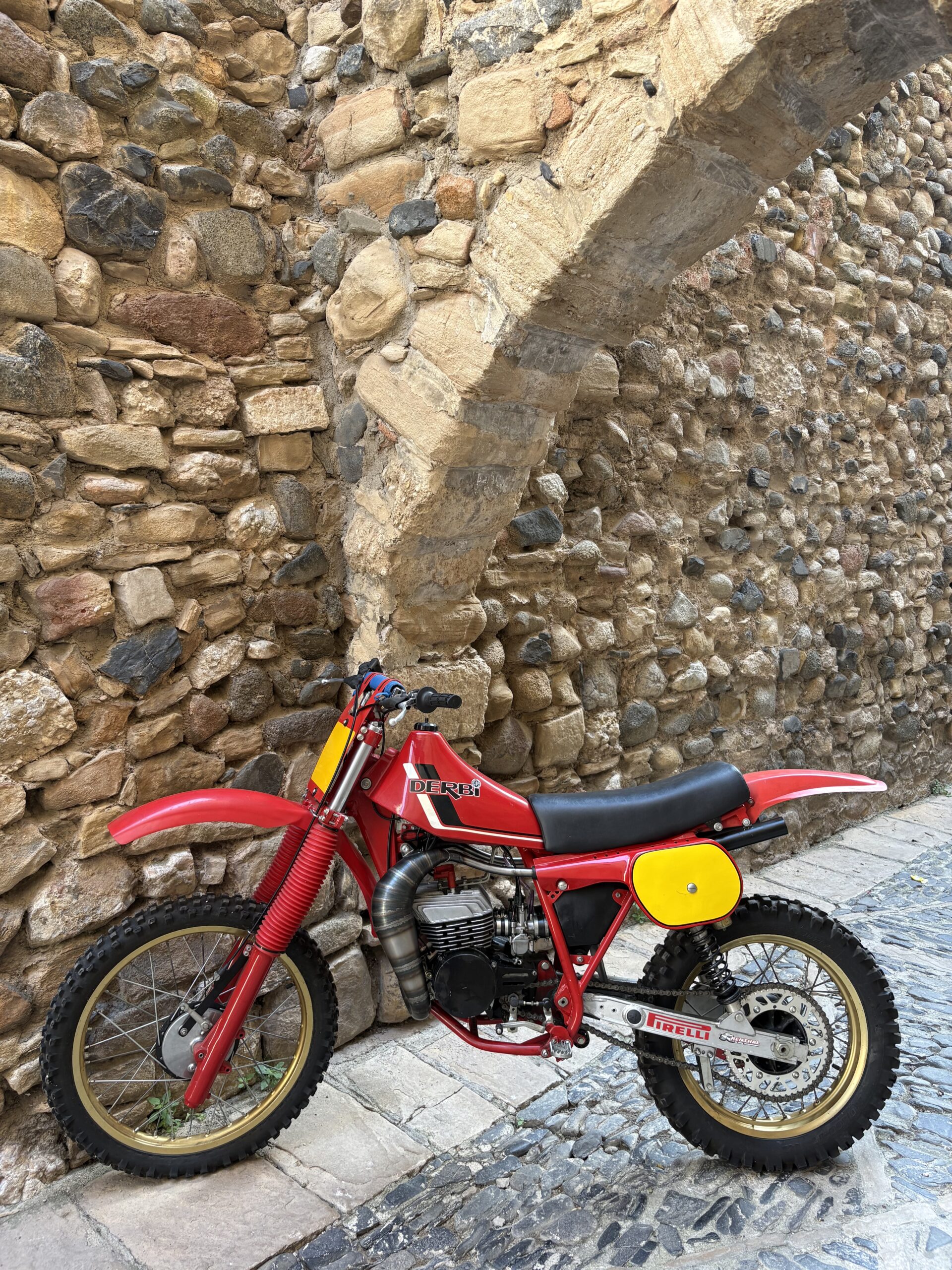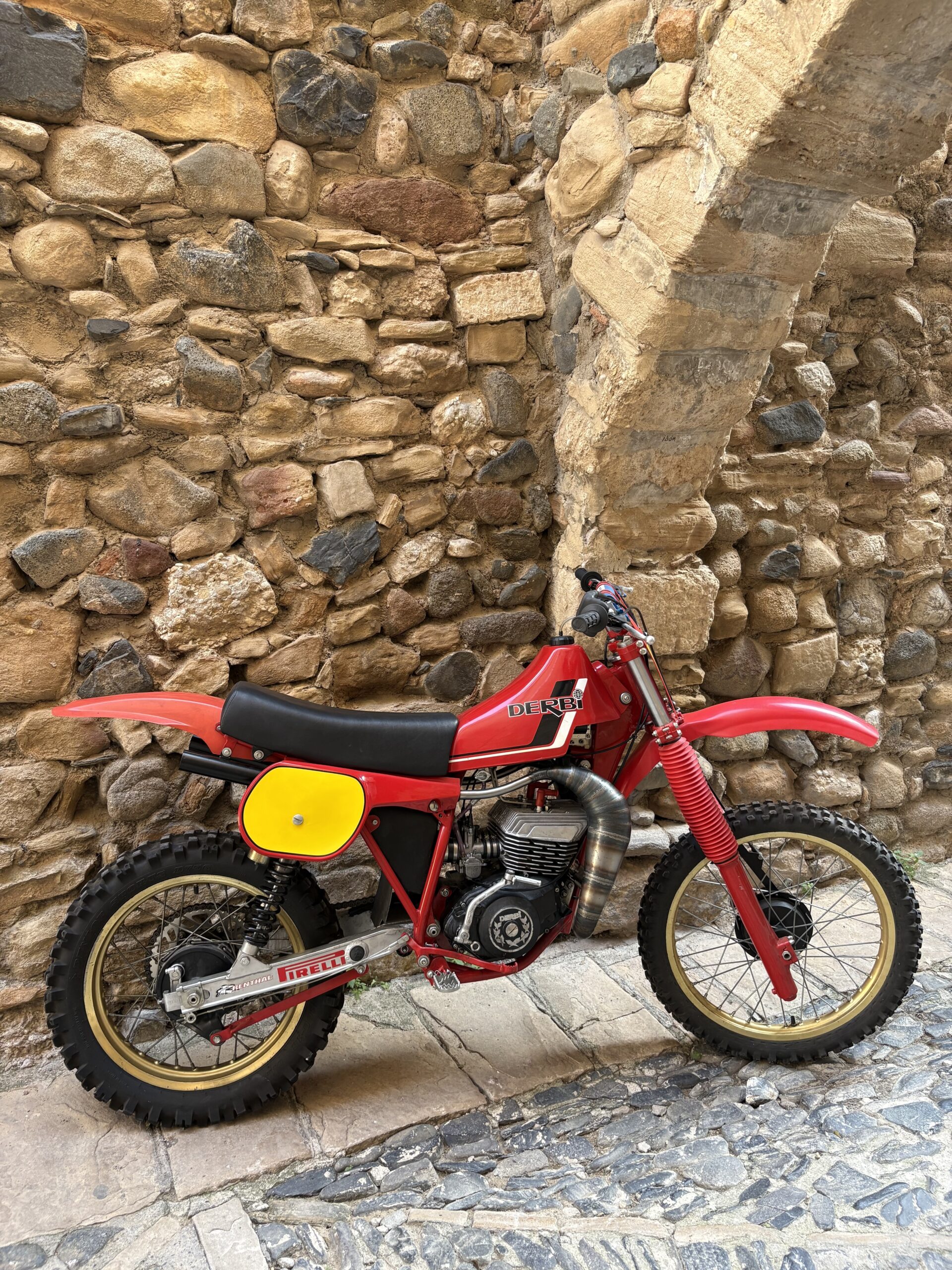 Es una réplica, con chasis de 250 RC, doble carburador, dos escapes, arranca y funciona bien, una preciosa réplica DERBI RC 250