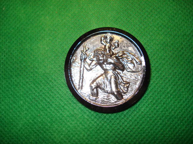 PLACA SAN CRISTOBAL DE 4CM DIAMETRO, COLOR PLATA.