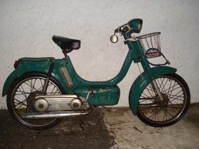| Vespino primera serie, con asiento monoplaza y faro redondo. |